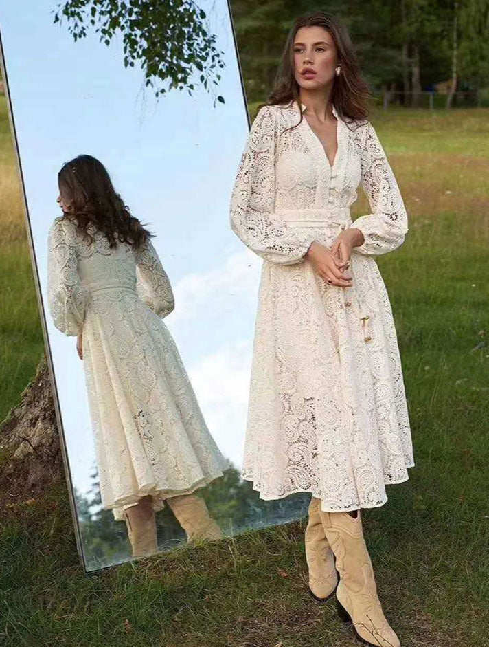 ANITA PATCHWORK V-NECK DRESS is absolutely lovely and feminine item. You can wear it for night dinner, for some special meeting, and you also can wear casual white sneakers, oversized hoodie or blazer and get casual look. This item is must-have in your wardrobe.