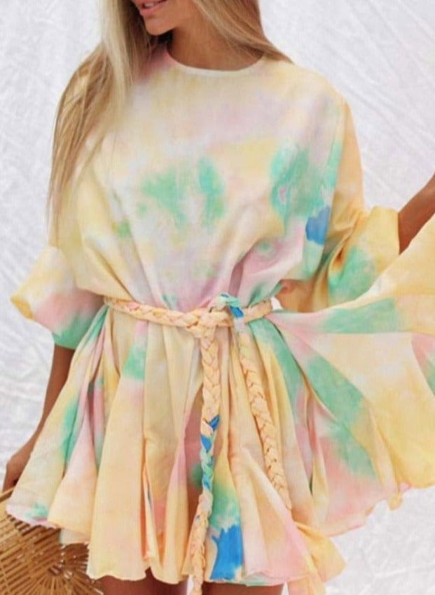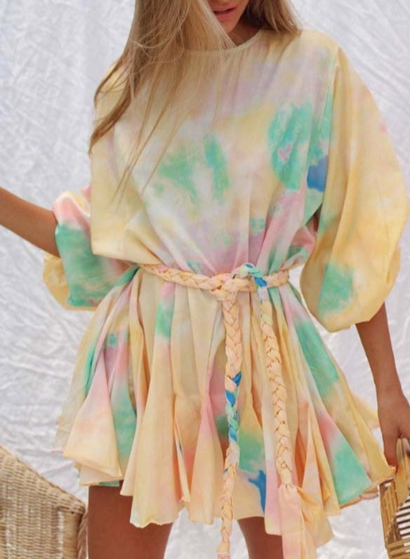 BELLA MINI DRESS has an oversized fit, comes with bets that guarantee you perfect shape. Must-have in your summer wardrobe.