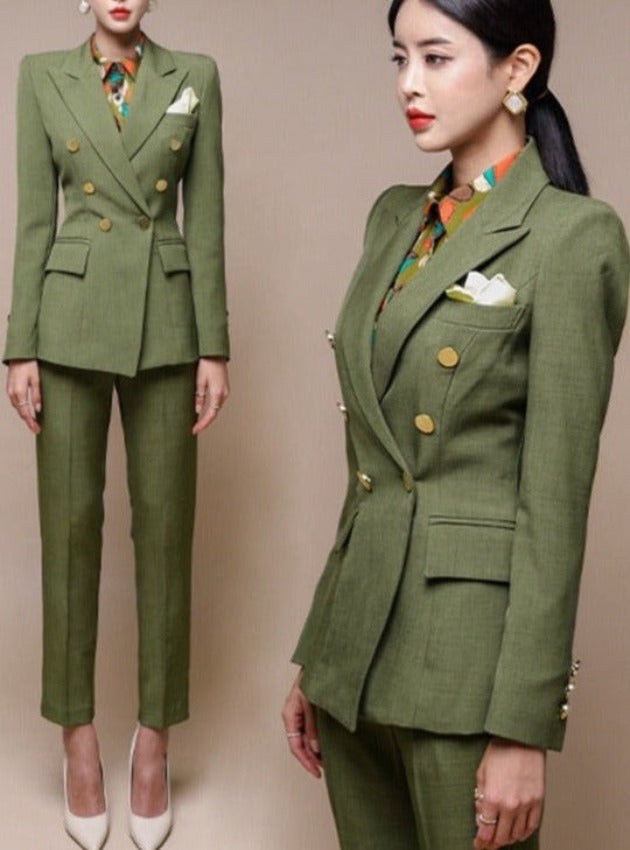 CRIS DOUBLE-BREASTED SUIT ultimate in chic styling! Perfect for office and going out, these chick pants set can be styled with sneakers&heels.