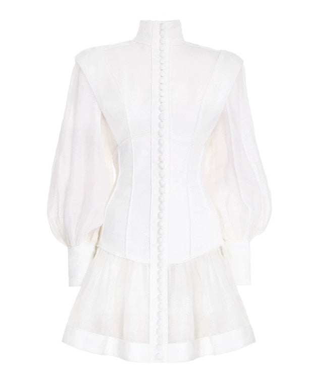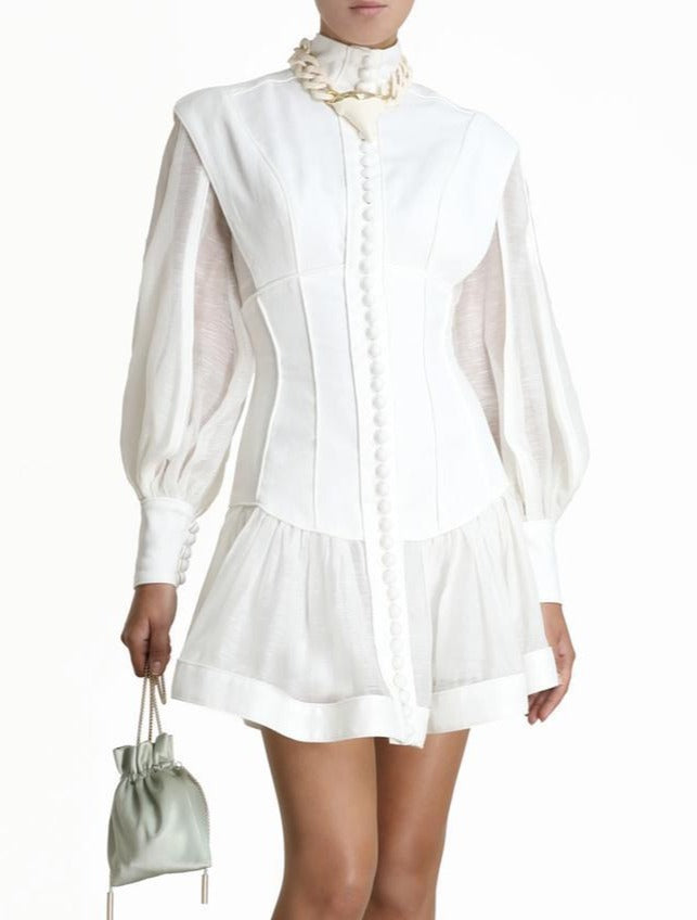 You can never have enough white dresses in your wardrobe. Our ISABELLA DRESS has chic fit, made from quality cotton material, has long lantern sleeves, a center-front button opening and perforated patterns throughout the garment.